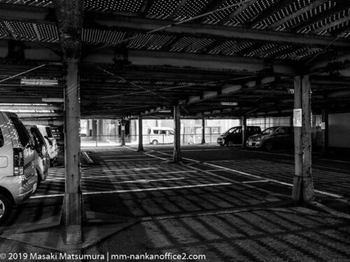 駐車場 撮ったあと写真をみると、左側の車に反射している光を主題にしたかったなと思いました。撮ってるときは気づかなかった……。 アパートの入口 これもあとからみると画面右側の手すりがいい感じだな~と自分では思うのですが、最初に思った構図はこれなの…